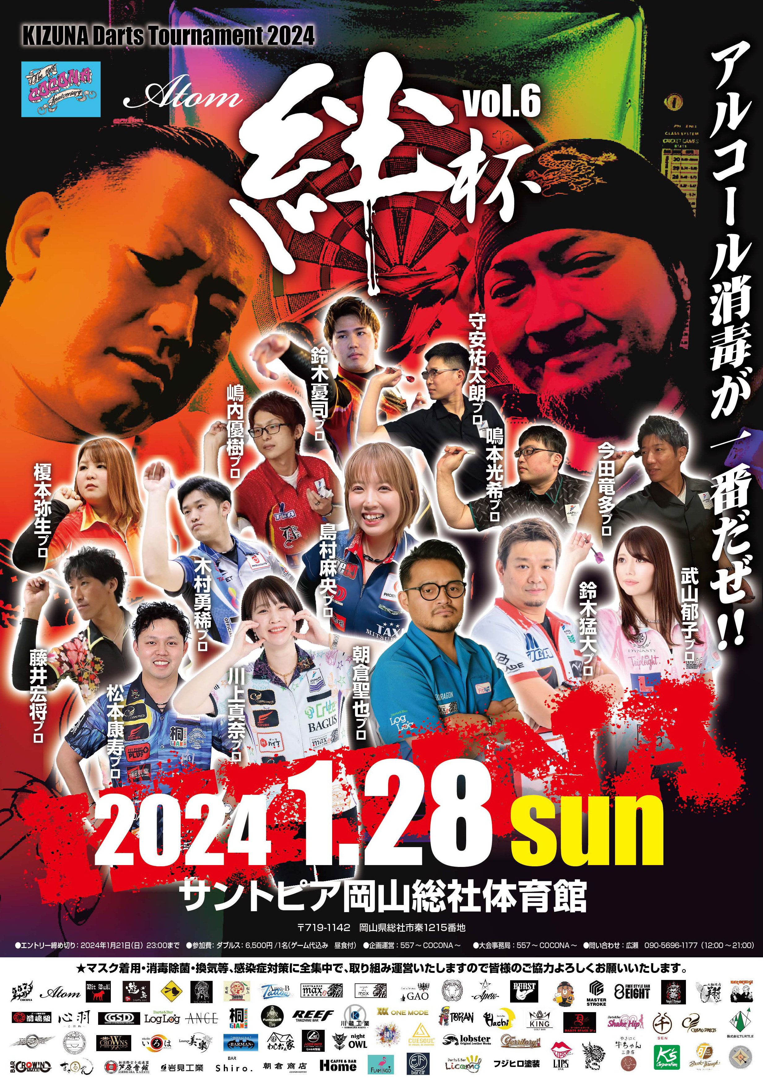 What's New 新着情報 2024.03.09 決勝動画を公開しました。 2024.03.04 決勝動画をぼちぼちアップしてます。 2024.02.01 大会結果をアップしました。 2024.02.01 大会風景をアップしました。 2023.11.07 特設サイトをアップしました。 The Guests Player 招待選手 島村麻央プロ 朝倉聖也プロ 松本康寿プロ 鈴木猛大元プロ 川上真奈プロ 鈴木憂司プロ 木村勇稀プロ 武山郁子プロ 嶋内優樹プロ 藤井宏将プロ 鳴本光希プロ 榎本弥生プロ 今田竜多プロ 絆杯2024 2024年1月28日(日)サントピア岡山総社 ゲスト多数!