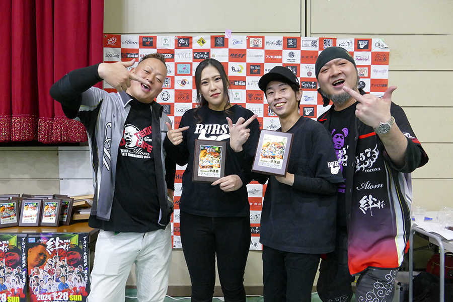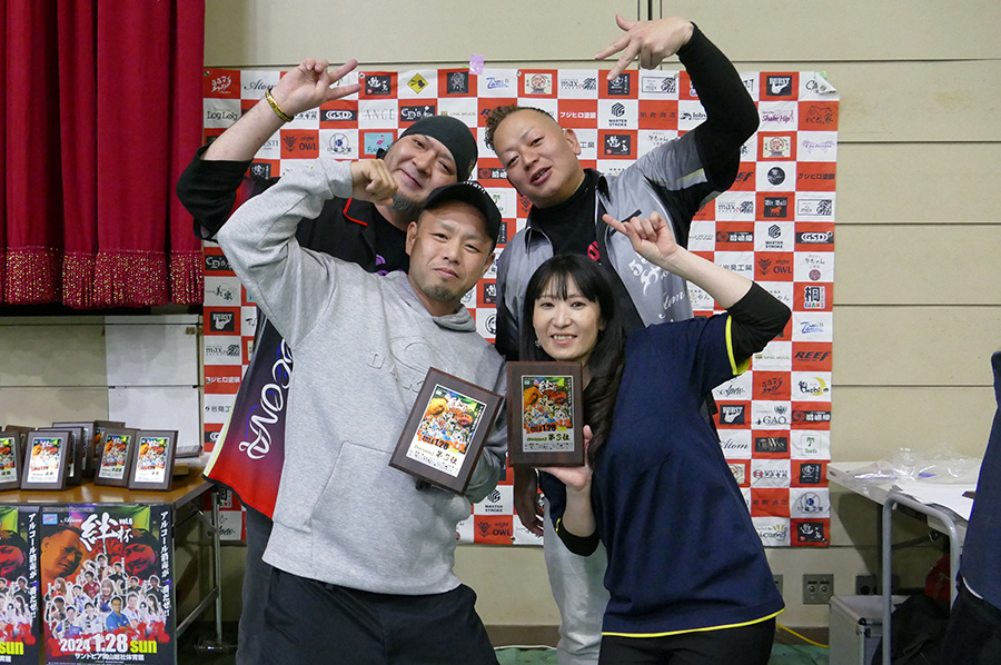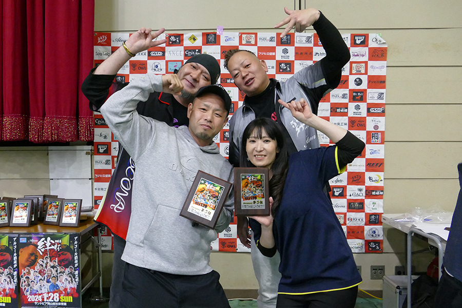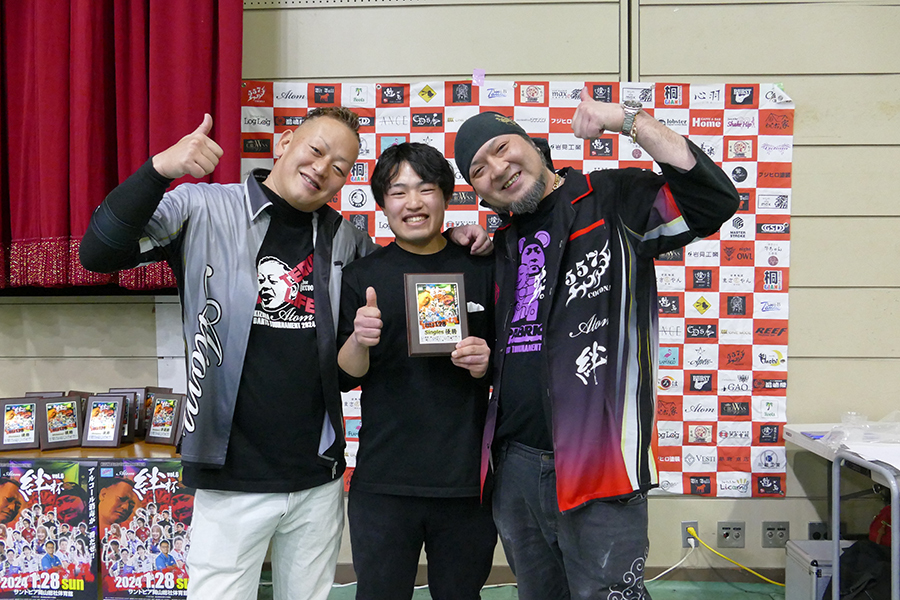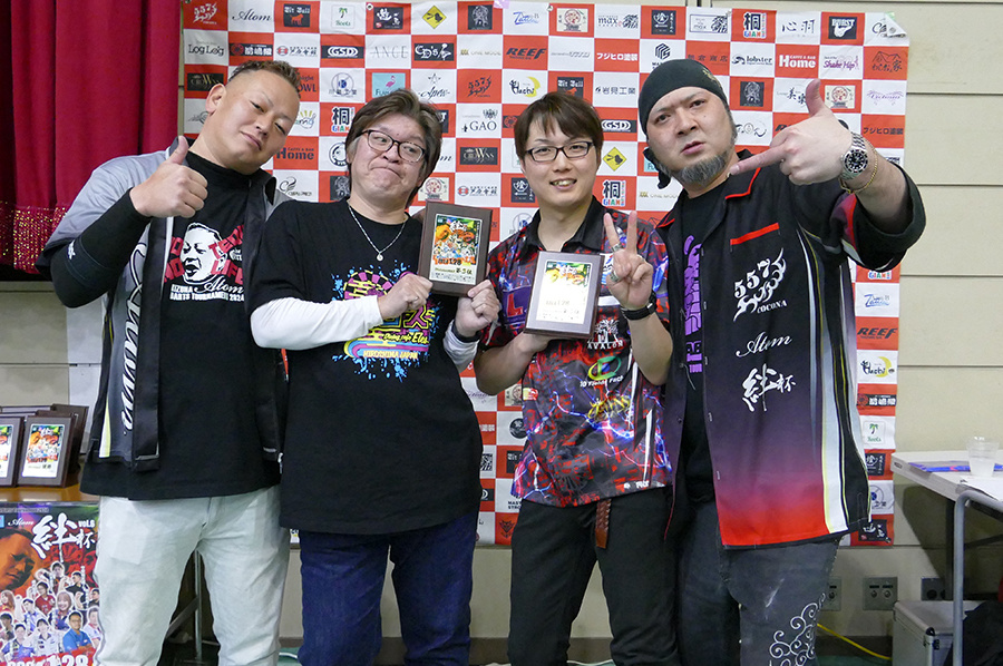 大会結果 RESULT Singles 優 勝 準優勝 優 勝 準優勝 Division MAX 優 勝 かげやまよしゆき & みずたはやと テリトリー 準優勝 いまだりゅうた&すぎうらあきのりゲスト HOME 第三位 はまべゆうた&はまもとしずまアバロン エレス Division 1 優 勝 あかさかよしまさ&もりしまだいきBar 27 準優勝 しまのうちゆうき&やすおかたくやゲスト 557 第三位 さかいたかお&やまさきともみBreak Through Division 2 優 勝 はまもとたいき&あつたかいむブライトカーズカンパニー 準優勝 ふじきひろし&おくかおりゆとり 第三位 いいまこうじ&さぎおかあつこGAO Division 3 優 勝 いとうようすけ&きくちひなこHachi 準優勝 きらよしひこ&たけもとまさきGAO 第三位 えもとかずひこ&えもとゆうきHOME Division 4 優 勝 うえだけんいち&みよしななみハーツ 準優勝 おかだたくや&とみたまきBURST 第三位 せのおりつき&かつまたけんとnight OWL Division 5 優 勝 ふじわらひろき & はせがわせなSACRAMENT 準優勝 たかくさつよし&おのしゅうじTORAN 第三位 のもとまこと&おかざきあんなゆとり 絆杯2024 2024年1月28日(日)サントピア岡山総社 ゲスト多数!